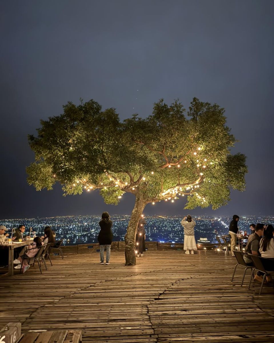 行程最後一站來到礁溪山上的「空ㄟ農場」,從山下的停車場搭乘店家的接駁車上山, 就能俯瞰整個蘭陽平原與遠方海岸線,是非常熱門的夜景咖啡館。 園區內以木棧步道、觀景平台與戶外座位為主,夜晚點燈後氣氛浪漫,很適合情侶或朋友小酌聊天。